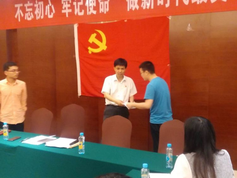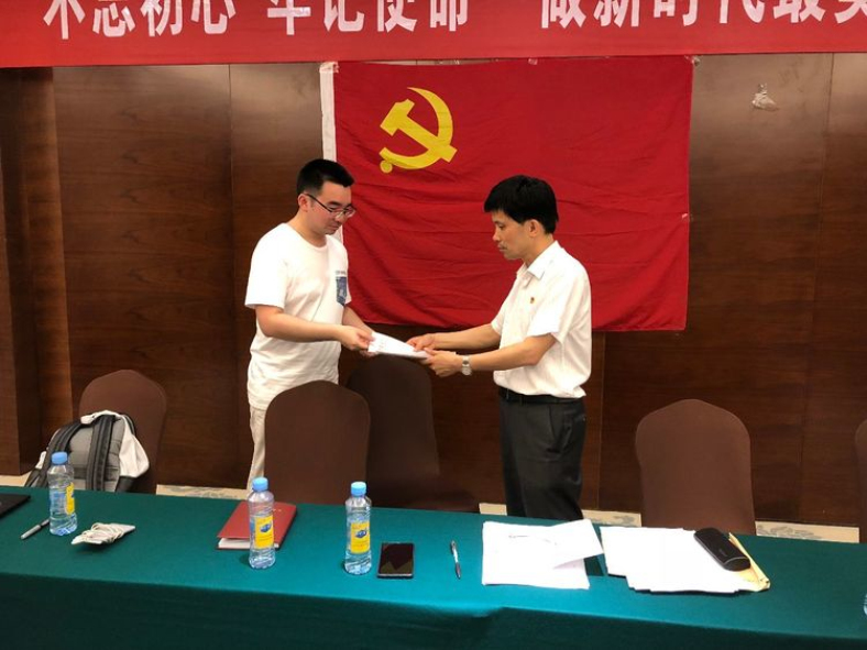 向临时党支部书记递交决心书: