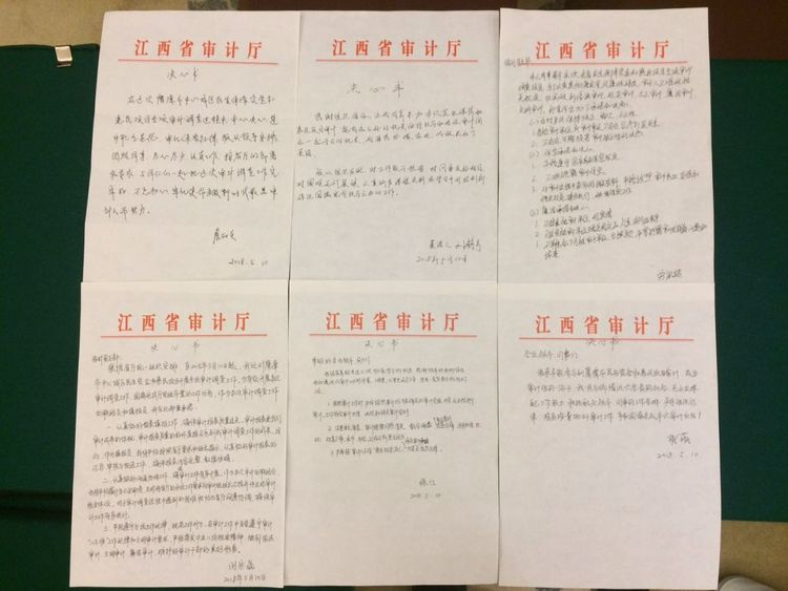 5月10晚,鹰潭民生审计组在集合后第一时间召开了工作布置会。首先,宣布成立民生审计组并对人员进行了分组分工,提出了审计重点和要求;其次,宣读了厅机关党委《关于成立临时党支部的批复》,明确了临时党支部及各支部委员职责;再次,针对城市民生审计人手缺、时间紧、范围广、任务重的特点,组织了全体组员逐个表决心,通过表决心,大家一致认为参加此次城市民生审计,使命光荣,责任重大,决心在审计中强化思想认识,服从组织安排,严明审计纪律,严守保密制度,密切协调配合,争取顺利、高效、圆满的完成厅党组赋予的审计任务。