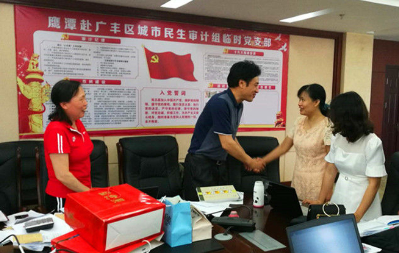 鹰潭市审计局党组书记、局长杨芳与郑华森区长进行坦诚的沟通交流,并代表审计组感谢广丰区给予审计组工作和生活方面的支持、帮助。