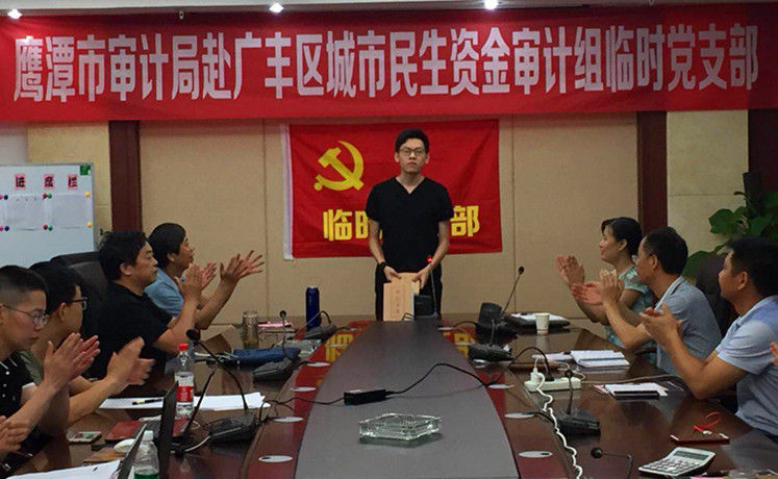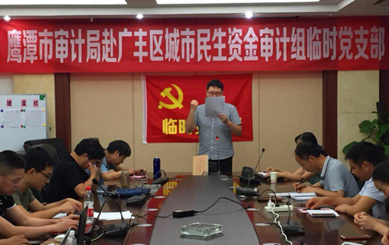 5月18日晚,鹰潭市审计局党组书记、局长杨芳同志深入赴广丰区民生资金审计组现场,与审计组临时党支部开展“不忘初心、牢记使命”主题教育活动