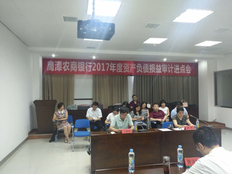 5月25日上午9:00,市审计局在鹰潭农商银行二楼会议室召开了鹰潭农商银行2017年度资产负债损益情况审计进点会。参会人员有市审计局党组成员、调研员王惠斌同志及审计组共14位成员,鹰潭农商银行董事长吴建华同志、鹰潭农商银行行长许立新同志等30位人员。